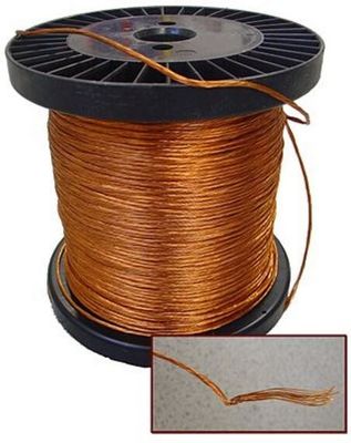 Litz Wire is a special type of enamelled wire widely used for high frequency coils. It consists of a many thin individual wires, coated with an insulating film and braided, thus increasing the surface area of the conductor and thereby reducing the skin effect and associated power losses when used with high frequency applications.When the number of wires is high, the construction of litz wires can also consist of multi-litz wires, where a number of Litz wires are stranded again. In this way, it is possible to have a Litz wire of more than 1,000 individual wires.